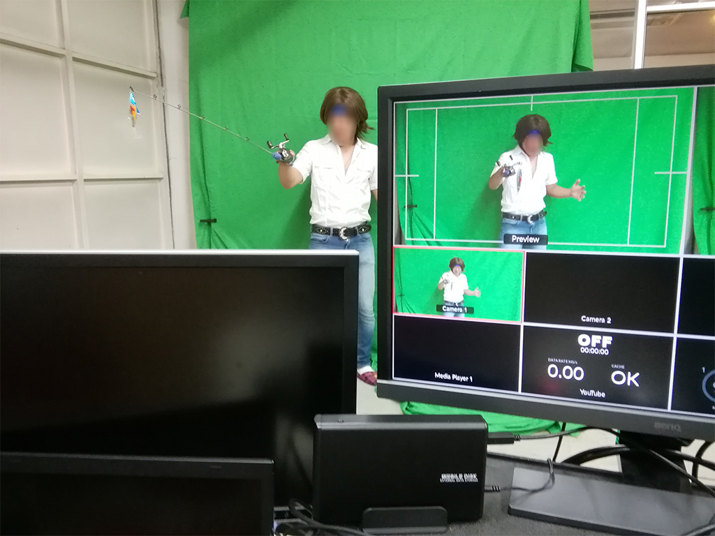クロマキー合成などの撮影も行え、その場で編集→完パケ、リアルタイム配信等も出来ます。